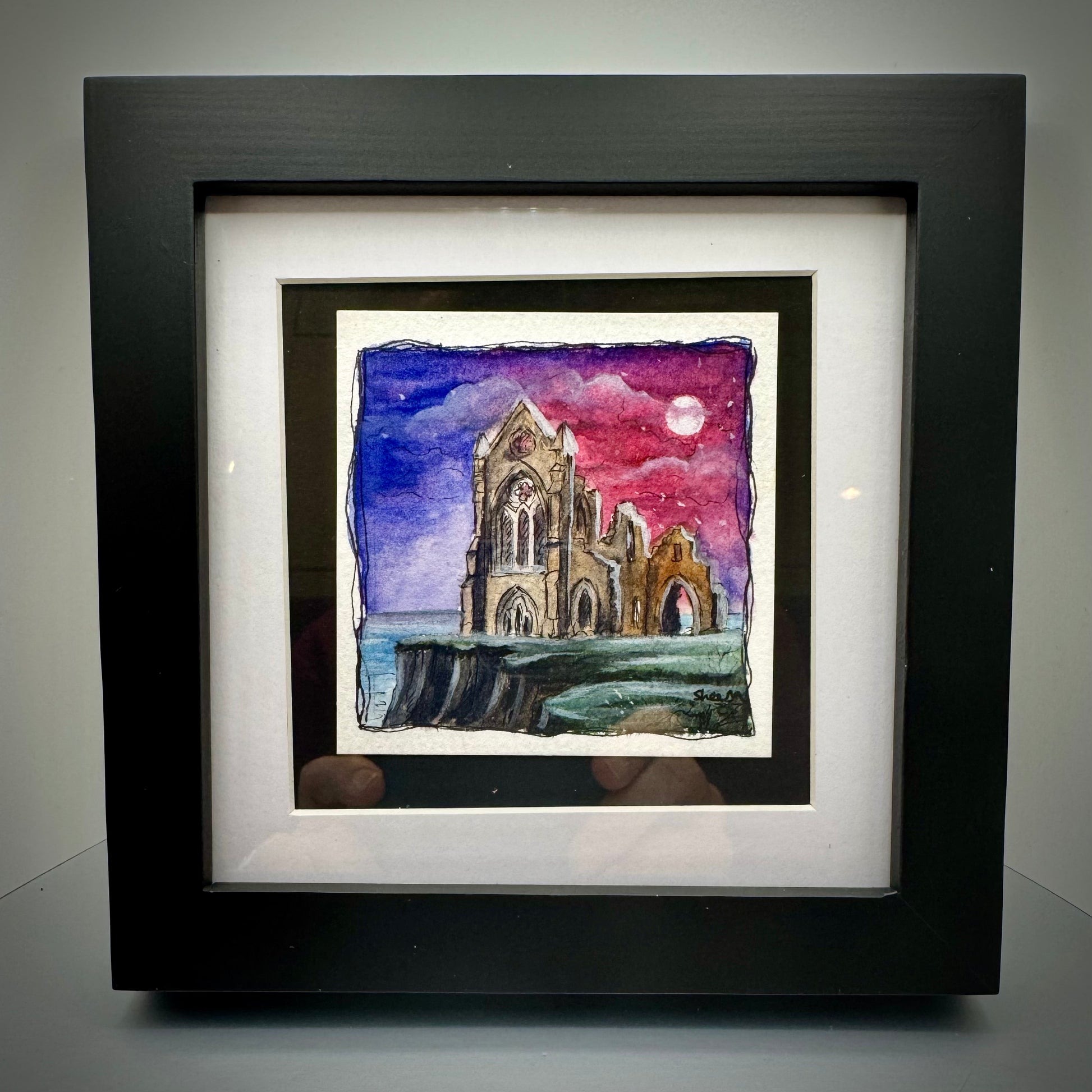 Hand-Painted Mini Masterpiece Originals by Sheena - Dramatic Abbey on Cliff
