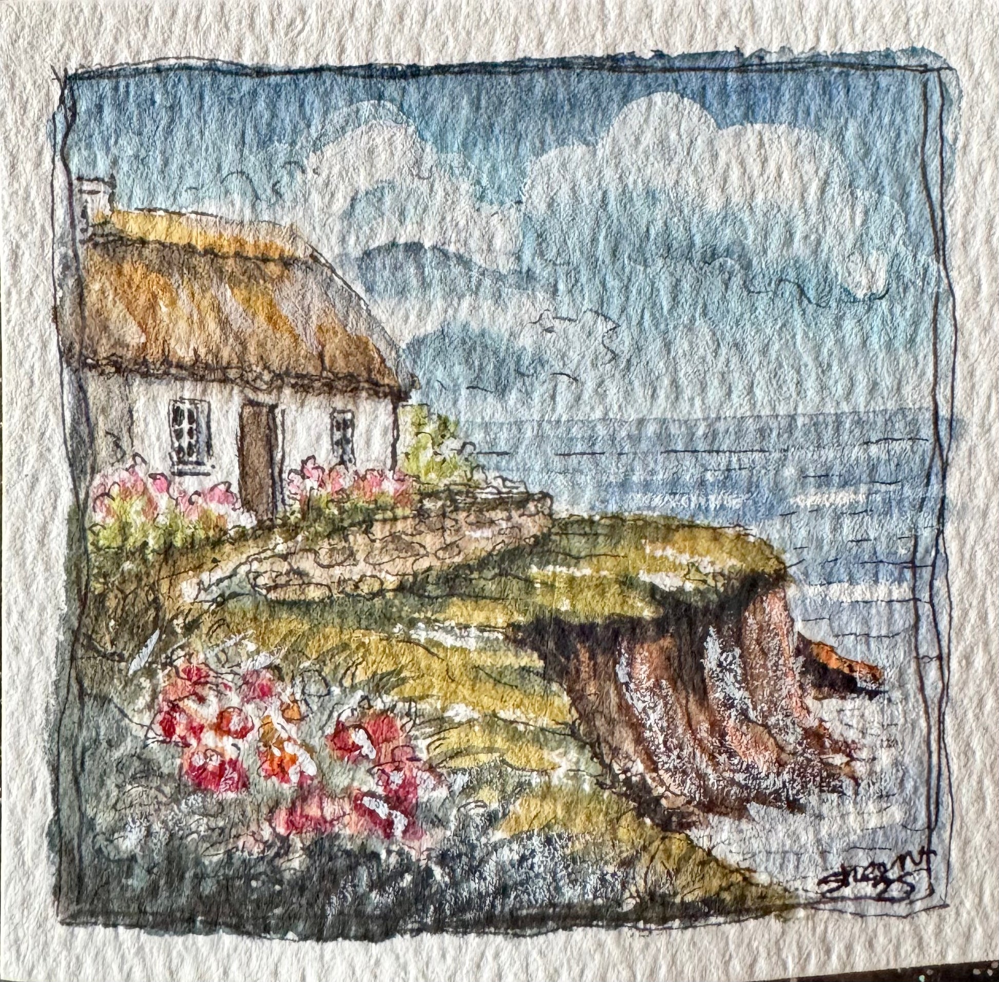 Hand-Painted Mini Originals by Sheena - Cottage on Coastline