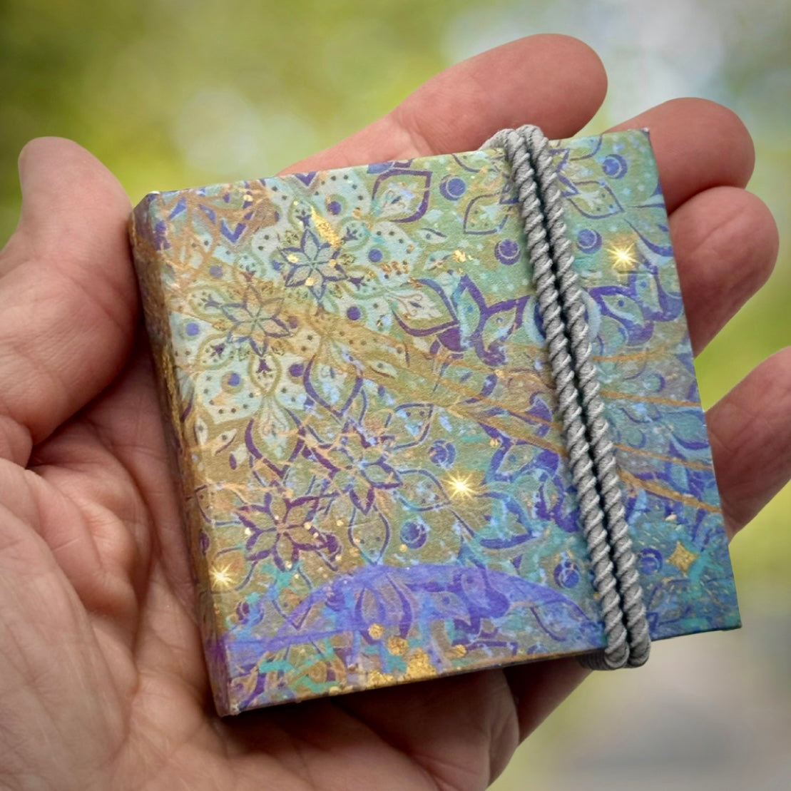 📖 A handmade hardback mini watercolour book – with at least 24 pages of 100% cotton watercolour paper. Each one is entirely made by Sheena herself: cut, folded, stitched, and bound using traditional bookbinding techniques. It’s as much a work of art as what you’ll create inside it.