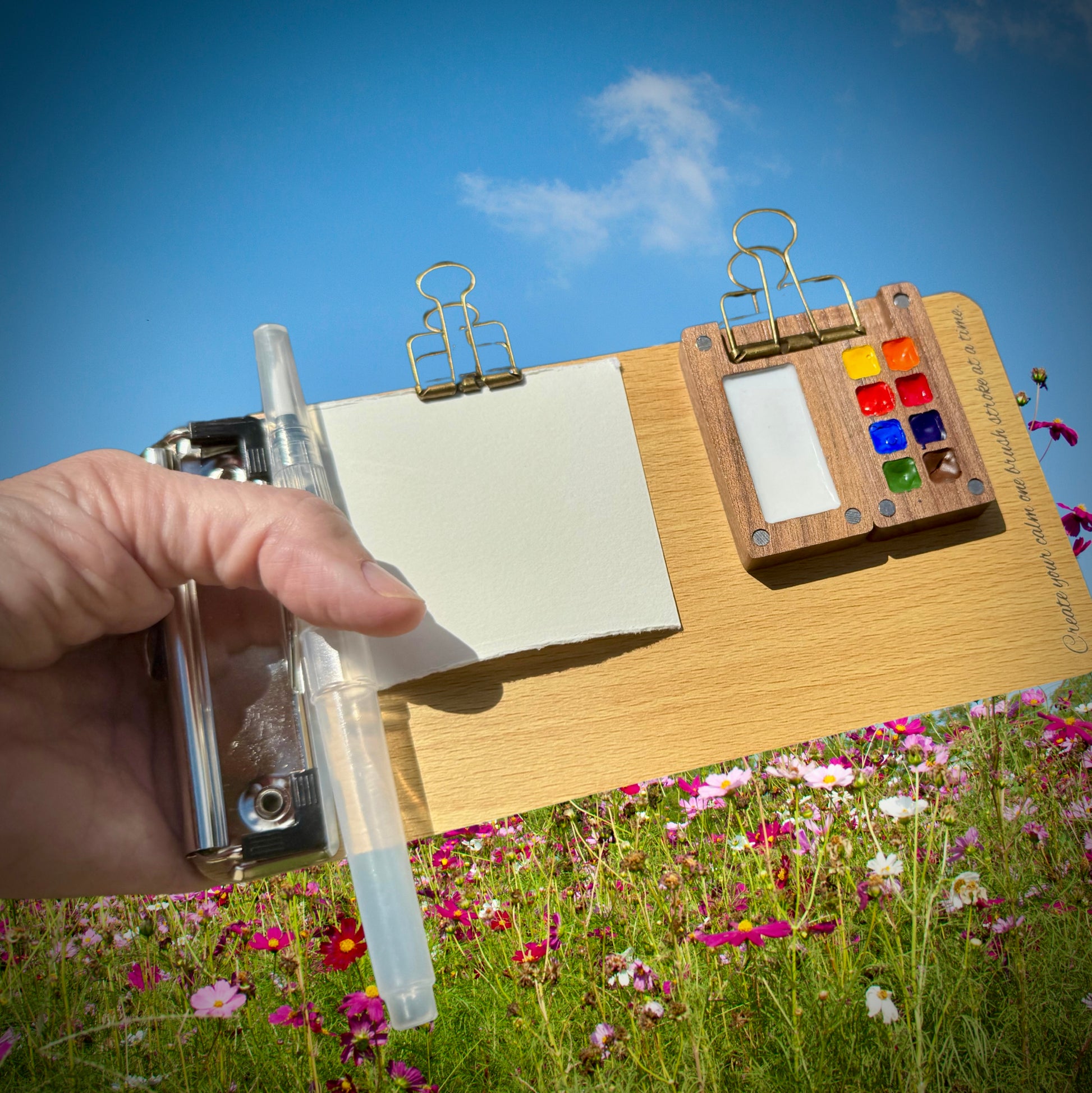 IMPORTANT! Please email me the name you would like to be engraved on to your mini watercolour palette and the short one line quote you would like on your mini clipboard.