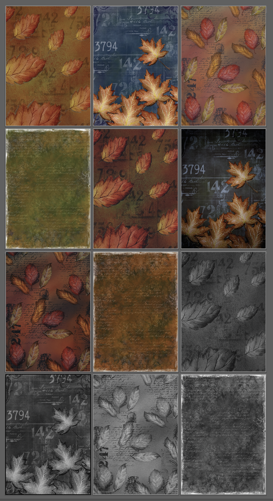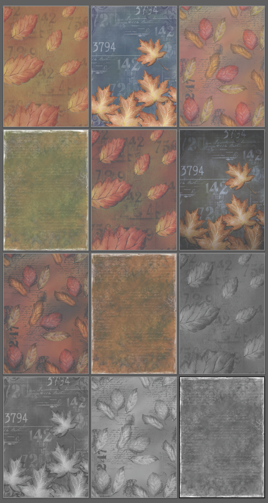 🌸 12 coordinating soft-tone background papers for gentler layering and collage work